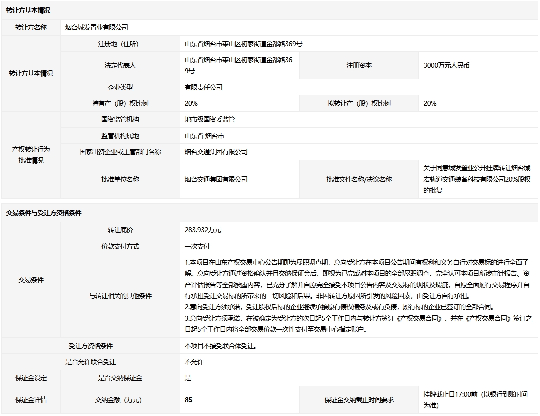 轉(zhuǎn)讓方:煙臺城發(fā)置業(yè)有限公司