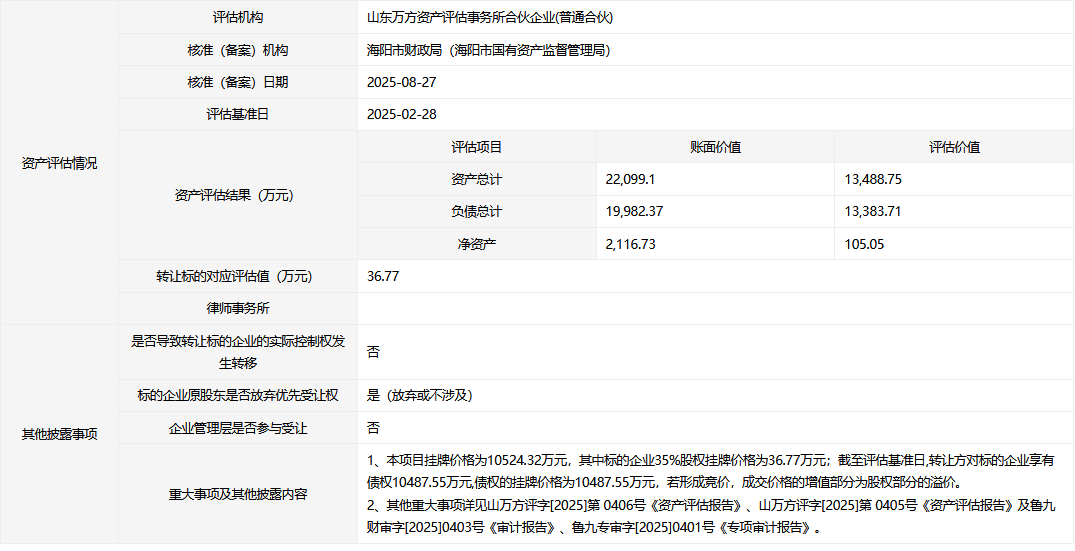 煙臺亞中海產(chǎn)品有限公司60%國有股權(quán)