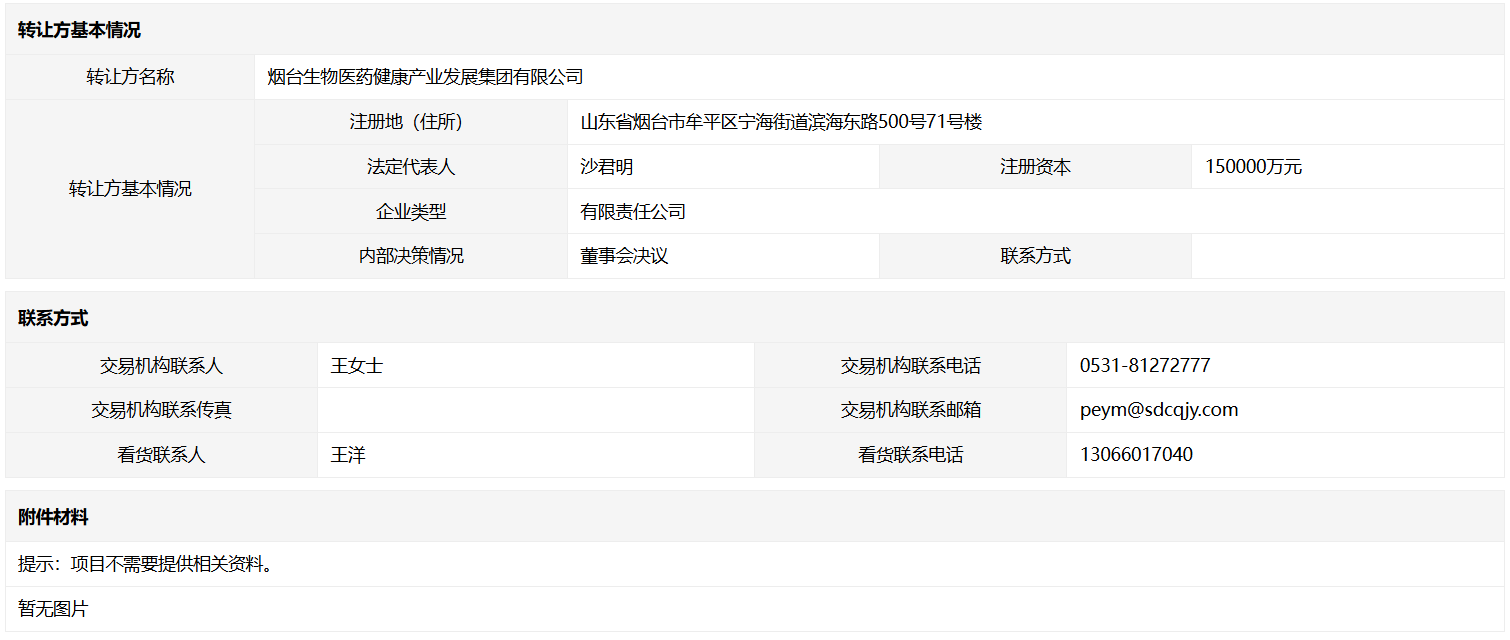 - 轉(zhuǎn)讓方:煙臺(tái)生物醫(yī)藥健康產(chǎn)業(yè)發(fā)展集團(tuán)有限公司