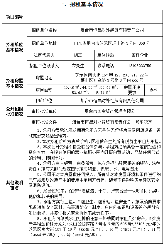 煙臺市恒昌對外經(jīng)貿(mào)有限責(zé)任公司5處非住宅房產(chǎn)