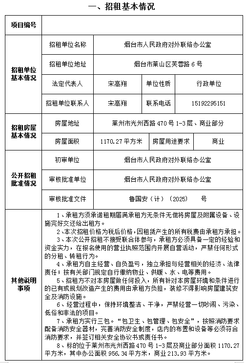 芝罘區(qū)北馬路240號(hào)大樓部分1層及2-3層招租交易公告